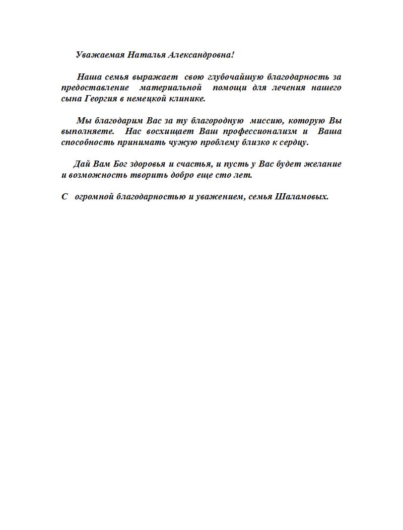 Благодарность от семьи Шаламовых