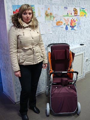25.04.09. Сегодня в фонд поступил долгожданный груз - инвалидное кресло-коляска модели "Василиса" для Гладких Кирилла. Она была передана Оксане Гладких ( на фото ) - маме мальчика. Теперь Кирилл сможет чаще гулять, радоваться весне, яркому солнцу и новым впечатлениям. Это очень важно для борьбы с его недугом.
