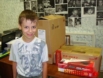 19.06.09. Сегодня у Сережи Сергеева день рождения. Ему исполняется 10 лет. Мы от всей души поздравляем его с "юбилеем". Желаем здоровья, хороших результатов по анализам и, конечно, скорейшего выздоровления. К этому дню мы приготовили Сереже подарок - компьютер. Мы надеемся, что этот подарок принесет ему те положительные эмоции, которые так необходимы в борьбе со страшной болезнью. Мы передаем сердечное спасибо от мамы Елены Анатольевны всем, кто откликнулся на ее просьбу, кто помог осуществить самую заветную и, казалось бы, несбыточную мечту Сережи. Низкий вам поклон!
