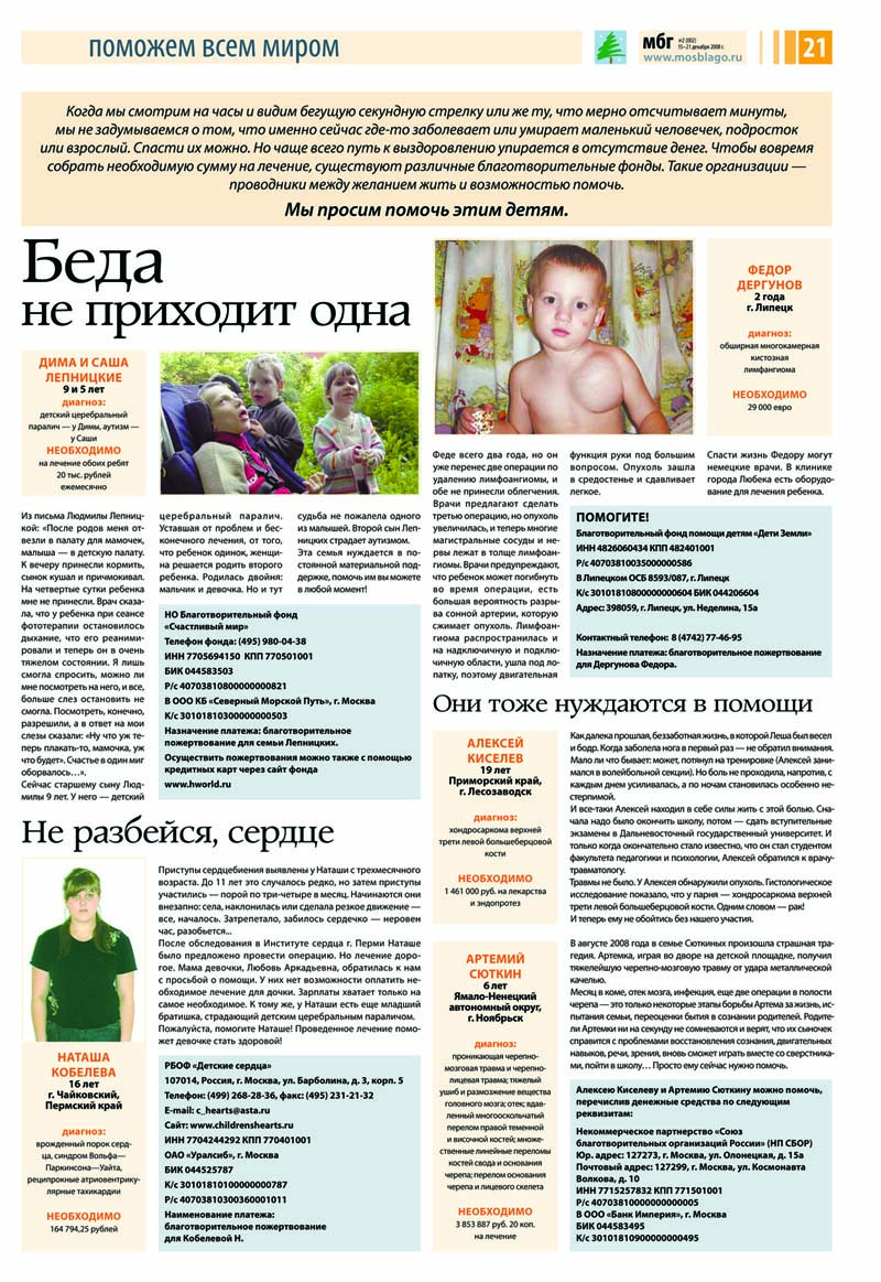 Так же мы продолжаем рассказывать о детишках, которые злым роком судьбы оказались прикованными к больничной постели и которым срочно требуется помощь.
