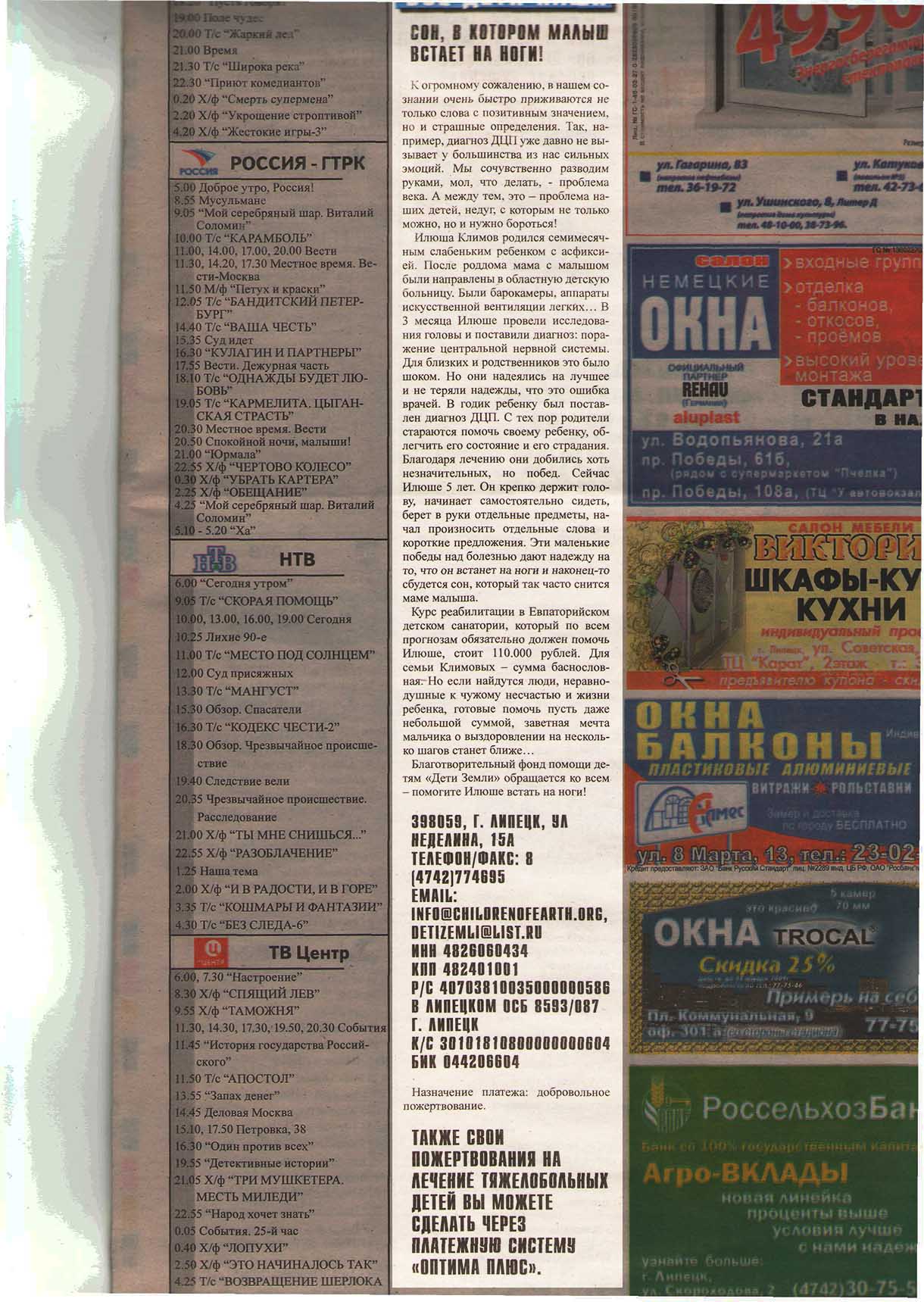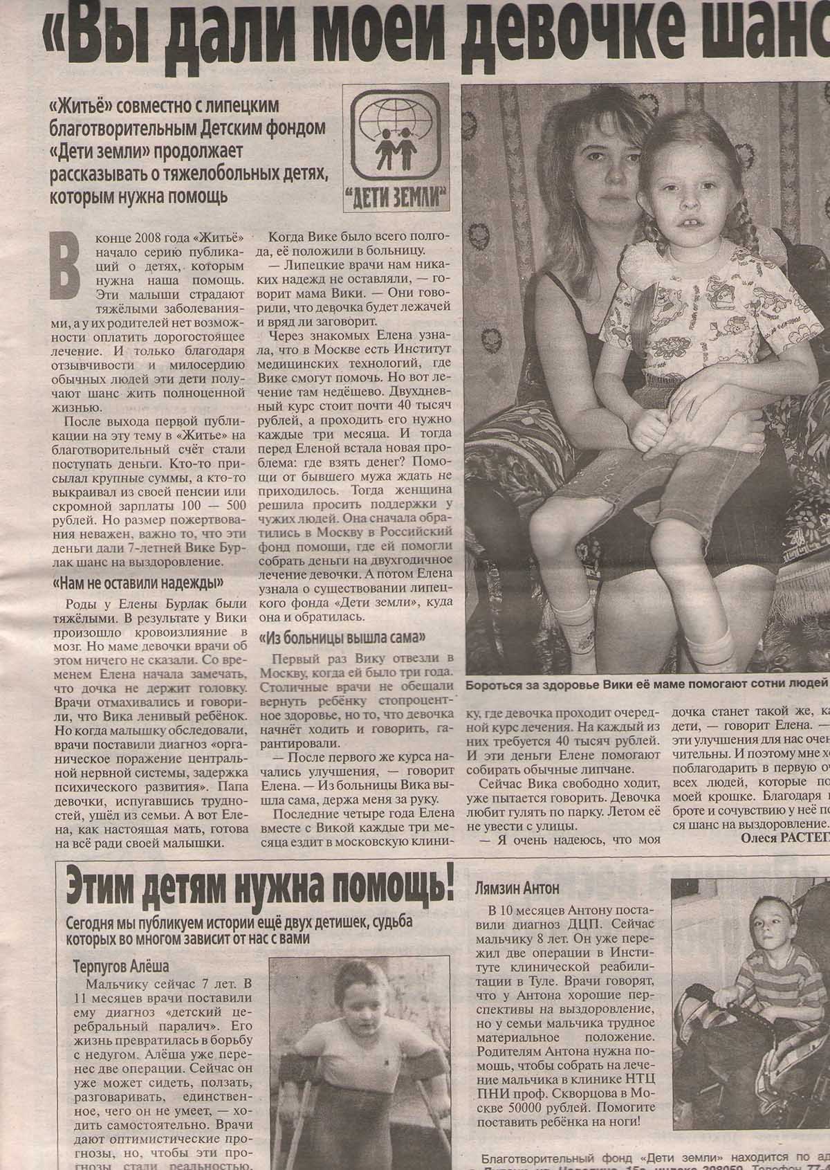 Благотворительный фонд помощи детям «Дети Земли» обращается ко всем неравнодушным людям, в чьих сердцах есть место состраданию. Ваша помощь – единственный шанс малыша обрести надежду на жизнь.