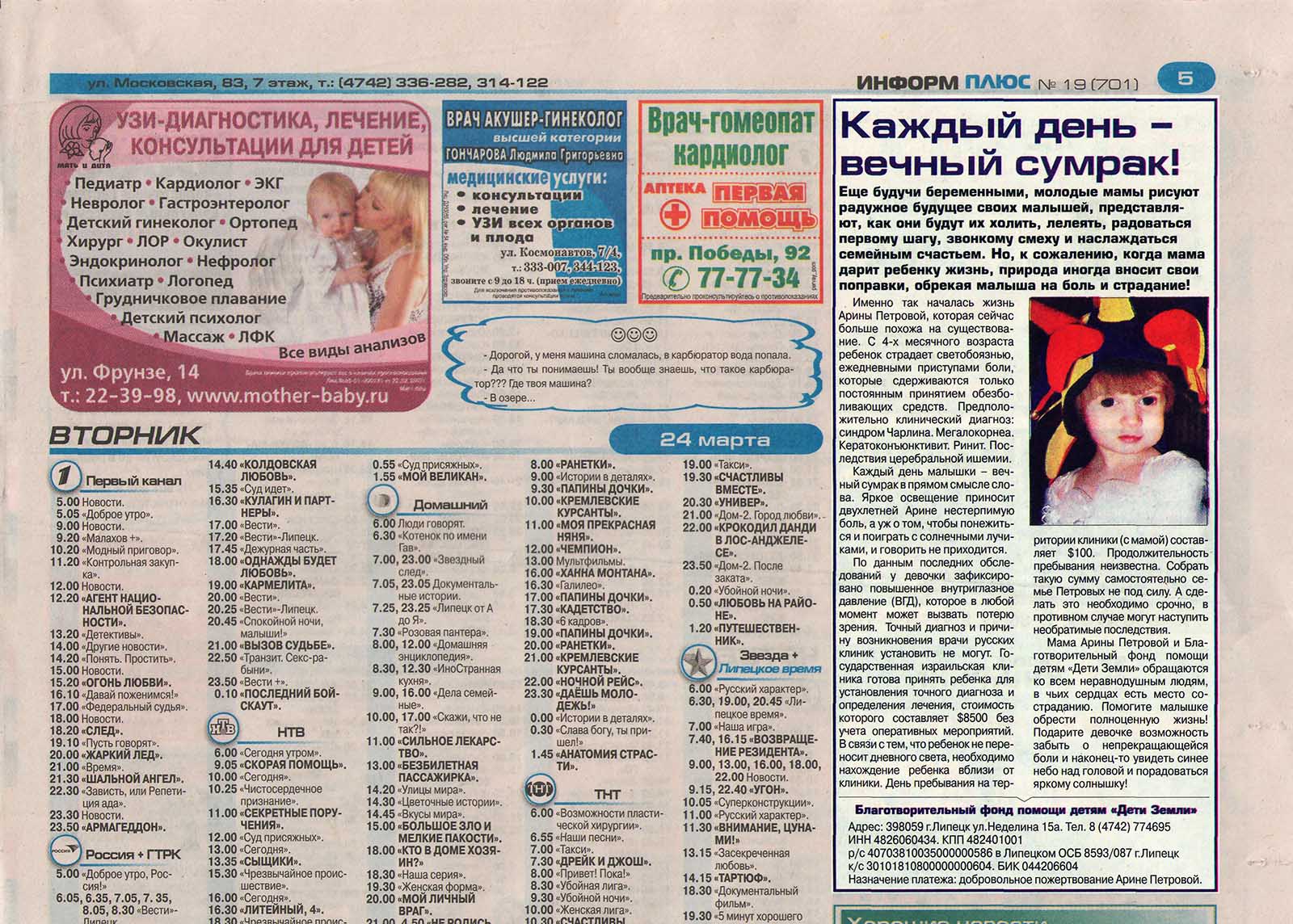 Статья "Чужого горя не бывает", газета ИНФОРМ+, выпуск 33(613) от 7 мая 2008 г.