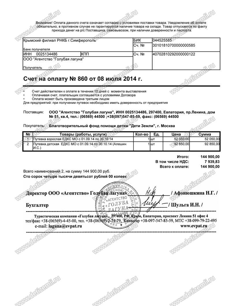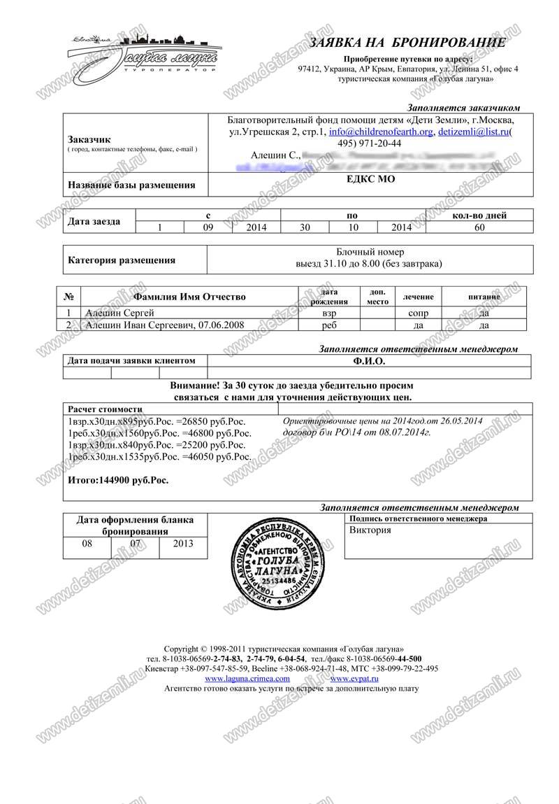 Оплачено лечение Ивана стоимостью 144900 рублей.