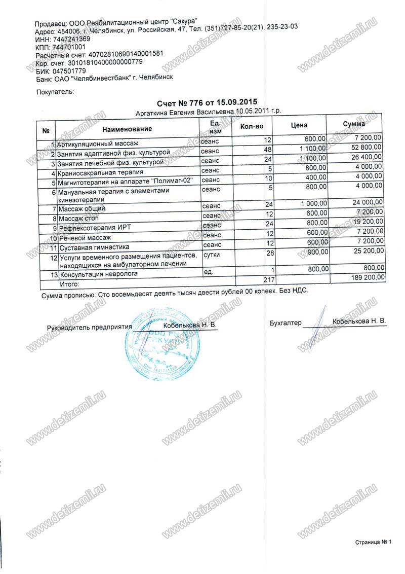 Оплачено лечение Жени стоимостью 189200 рублей.