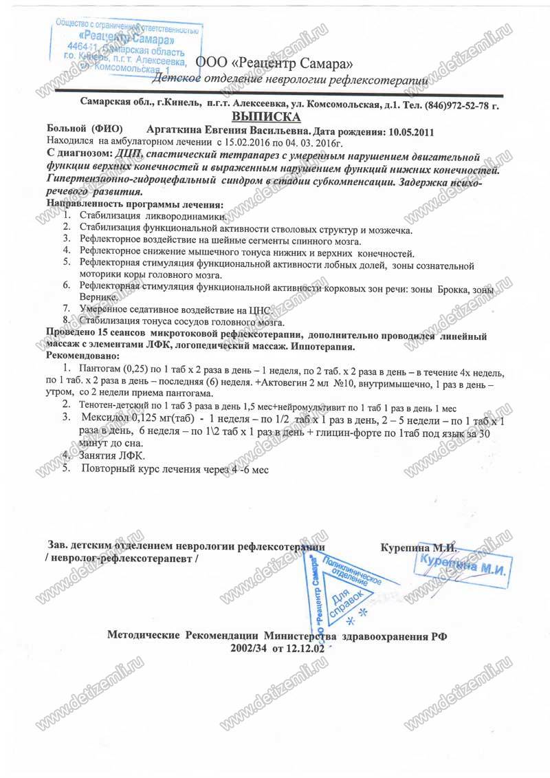 Оплачено лечение Аргаткиной Жени