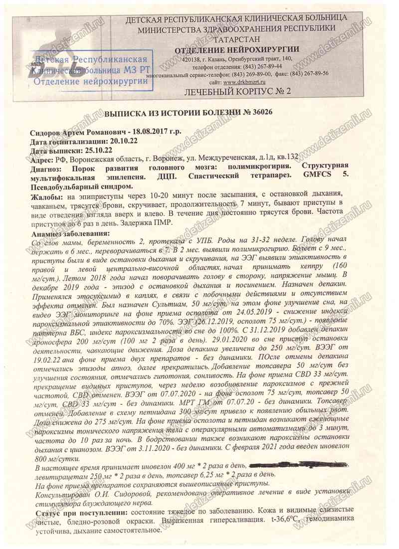 Оплачено лечение Сидорова Артема