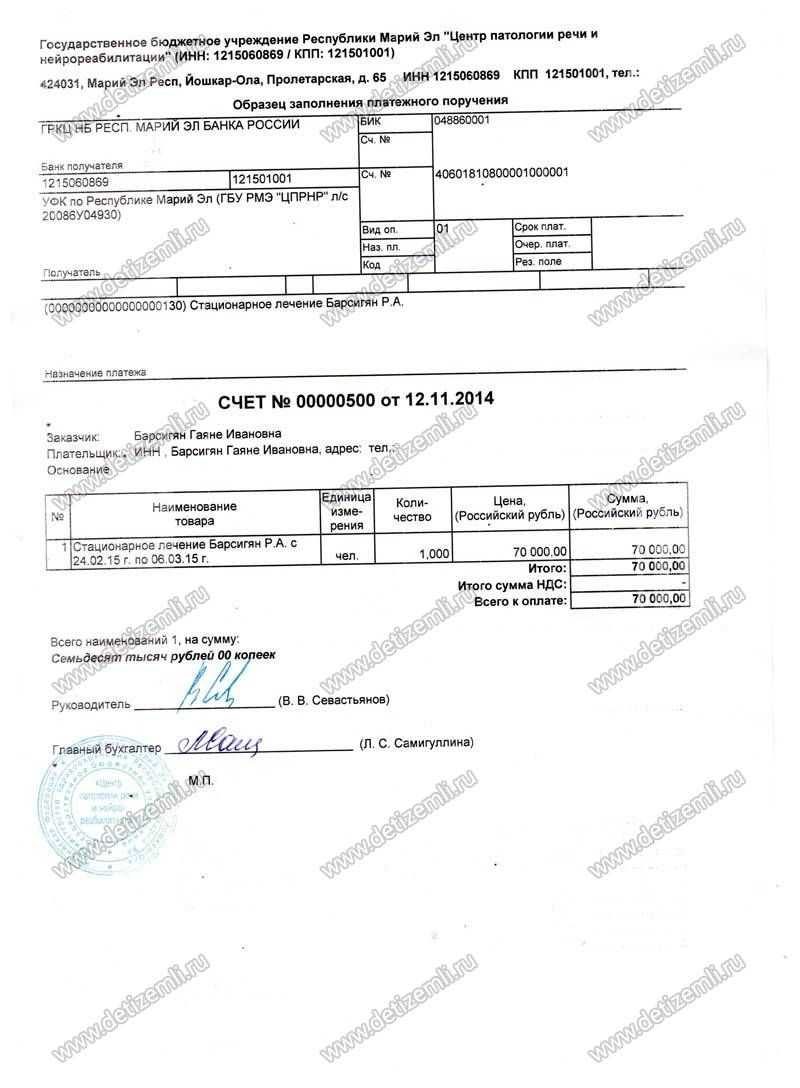 Оплачено лечение Роберта стоимостью 70000 рублей.
