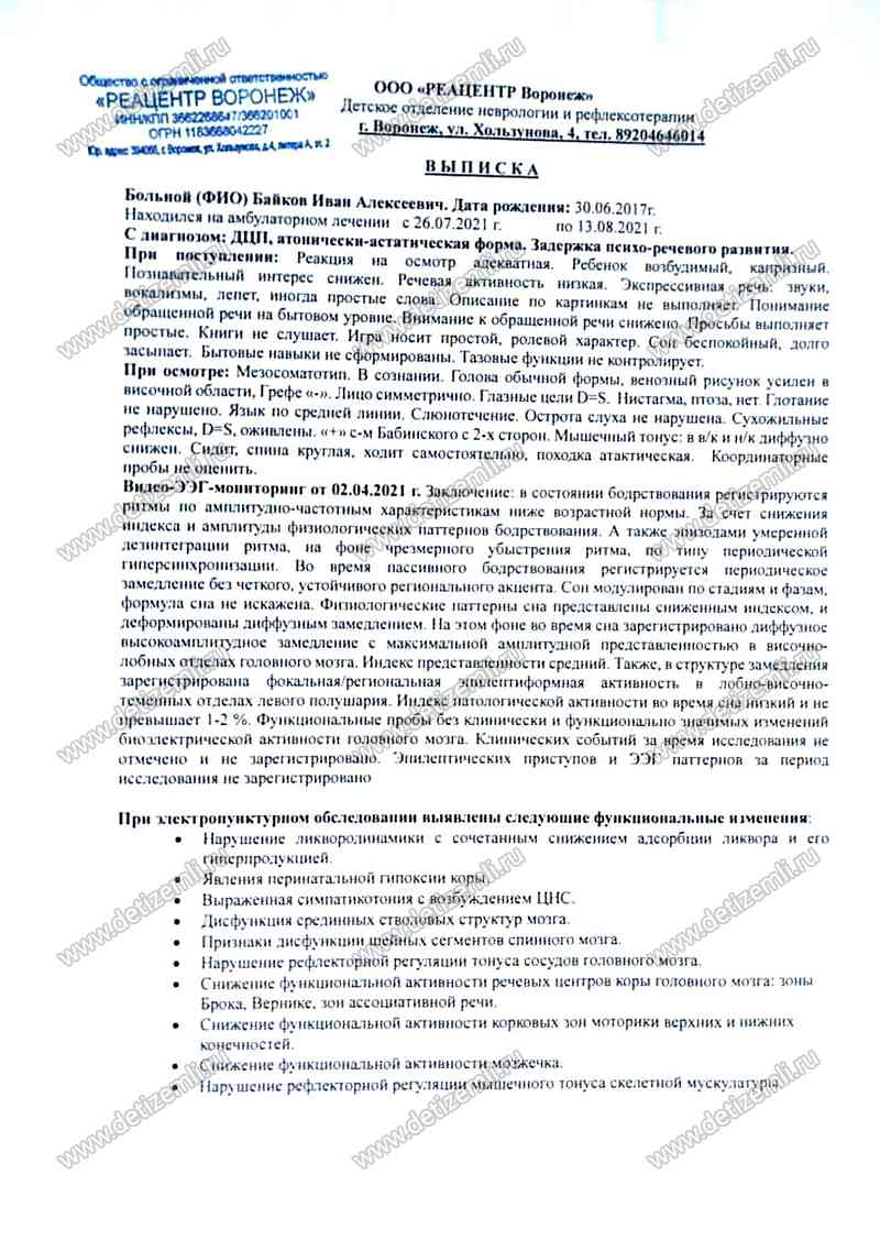 У моего сына, Байкова Ивана Алексеевич, 30.06.2017 г.р., диагноз ДЦП, атонически-астатическая форма. Ваня прошел уже 6 реабилитаций в центре Логос. После каждой реабилитации у него заметен прогресс. Ваня уже начал ходить, но есть еще множество проблем и в физическом и в интеллектуальном плане.