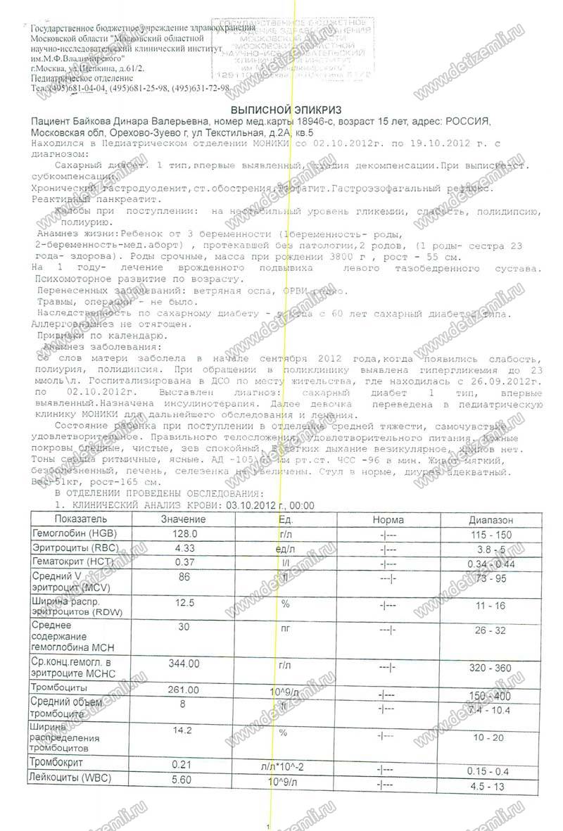 Диагноз: сахарный диабет 1 типа