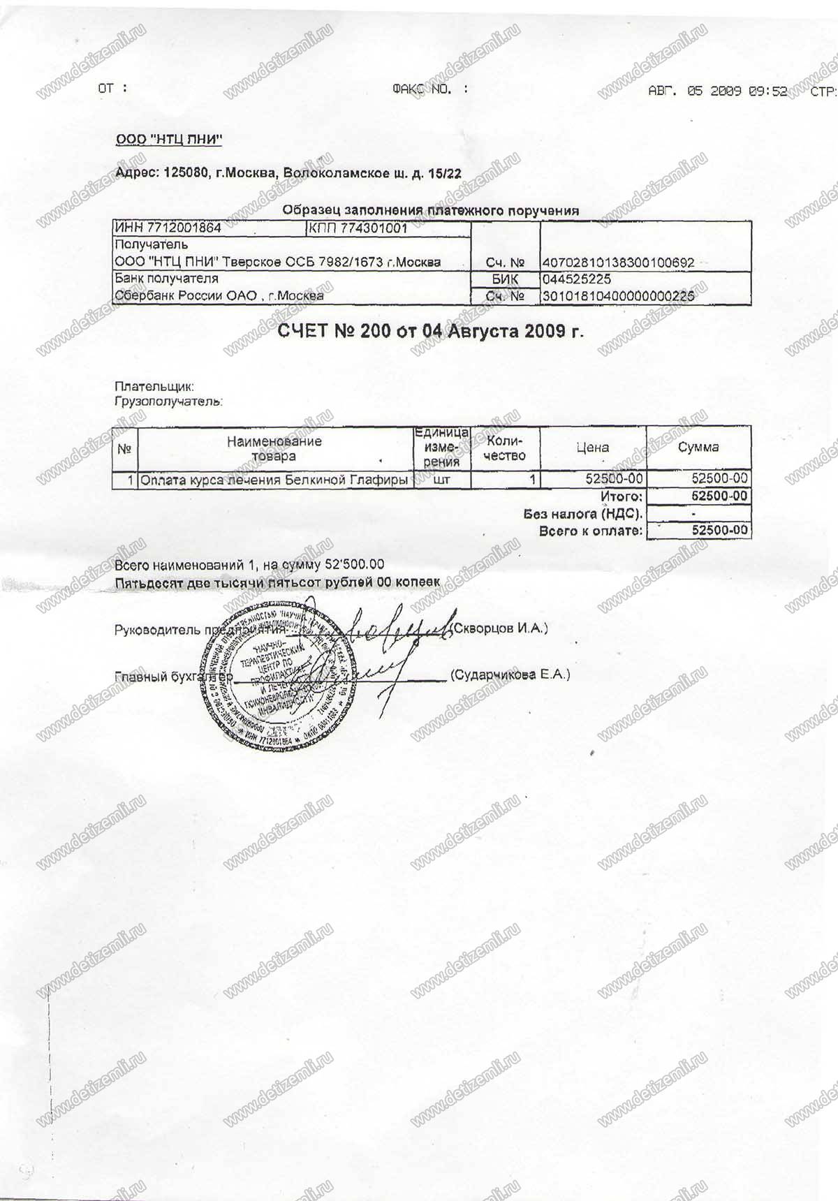Оплачено лечение Глафиры в Москве стоимостью 42 000 рублей