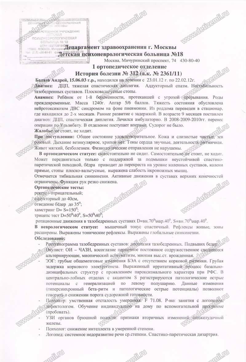 Диагноз: спастическая диплегия