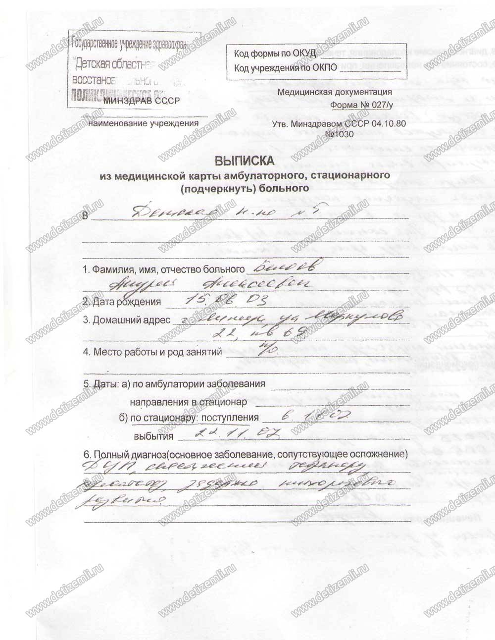 Диагноз: детский церебральный паралич