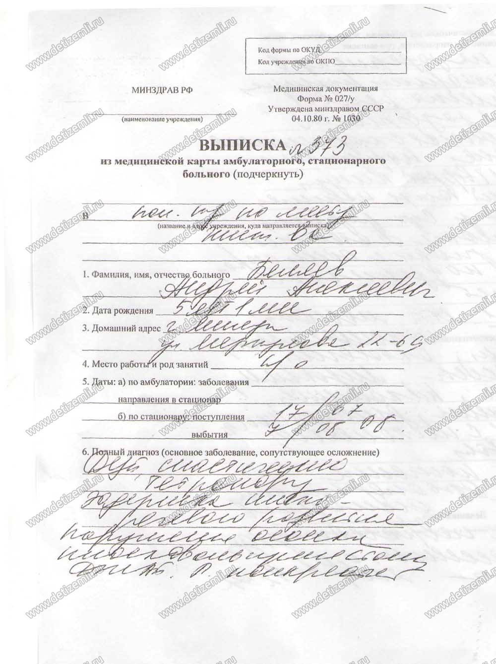 Мой сын Андрей тяжело болен с рождения. Роды проходили тяжело. В год Андрею поставили страшный диагноз ДЦП спастический тетрапорез. Мальчик самостоятельно не сидит, не ползает, не ходит. На протяжении 6 лет мы боремся со страшной болезнью. Проходили лечение во многих клиниках: Москвы, Санкт-Петербурга, Воронежа, Тулы. Врачи отмечают улучшение, но требуются повторные курсы. В 2008 году Андрею сделали операцию в Туле по методу Ульзибата , в этом году требуется повторная. Если во время проходить все лечение, то у ребенка есть шанс на выздоровления. Мы очень нуждаемся в вашей помощи. Помогите, дайте шанс на счастливую, полноценную жизнь.
