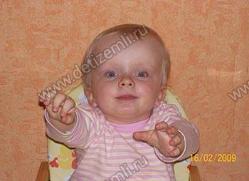 Состояние девочки после всех курсов лечения: она устойчиво сидит, реагирует на предметы, действия родных, играет с игрушкам и различными предметами, узнает родных (маму, бабушку). Пытается стоять с поддержкой - не получается. Не разговаривает, но показывает ручкой куда ей надо. Иногда пытается повторять слова, которые услышит. Не говорит "мама", "баба". Машет ручкой и говорит несвязно "пока". Плачет, когда "ругают" ее или не дают какую-то игрушку. Заполучить хочет все: и ложки, и папки, и книги, и газеты, и пакеты. Любит слушать песни. Вот это о состоянии моей дочери.