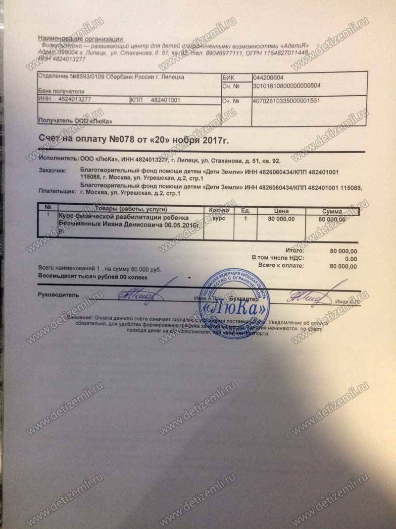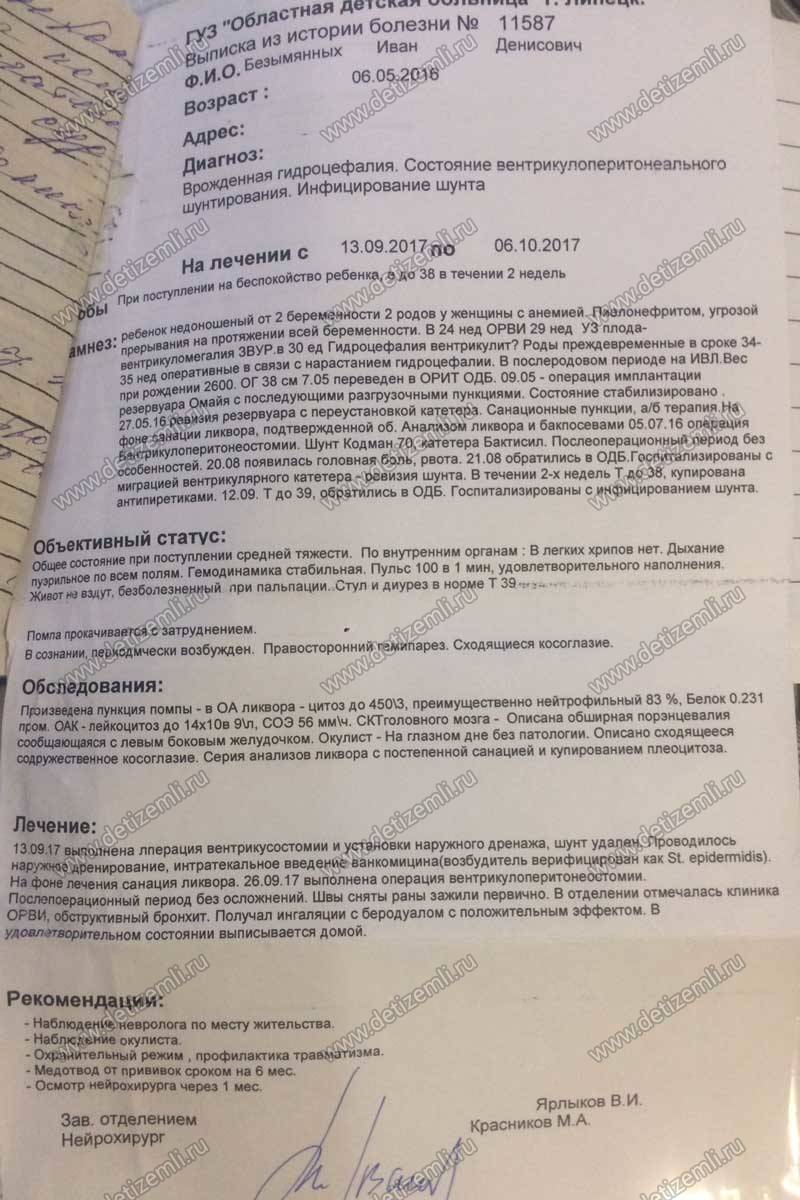 Благотворительный фонд помощи детям «Дети Земли» оплатил лечение Ивана стоимостью 80000 рублей. Благодарим спонсоров за помощь, а мальчику желаем быстрее поправиться.