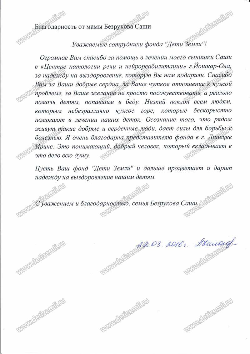 Я, Комолова Лариса Викторовна, обращаюсь за финансовой помощью в оплате лечения моего сына Безрукова Саши