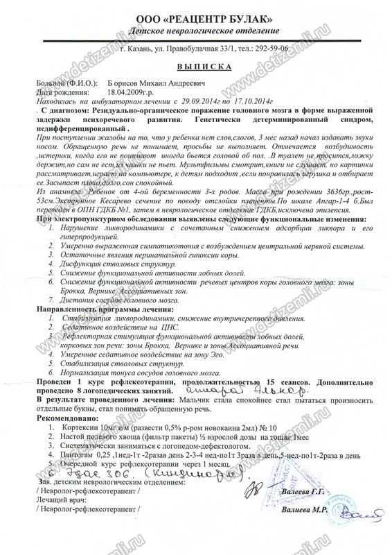 Мы узнали от родителей других детей с подобными проблемами, что есть такой вид лечения, как микротоковая рефлексотерапия. Мы записались, поехали и не разочаровались! Результаты превзошли все наши ожидания. Миша стал более доступен для общения. Появился зрительный контакт, частичное выполнение команд, дискомфорт от сырых трусиков. Стал интересоваться счетом, буквами.