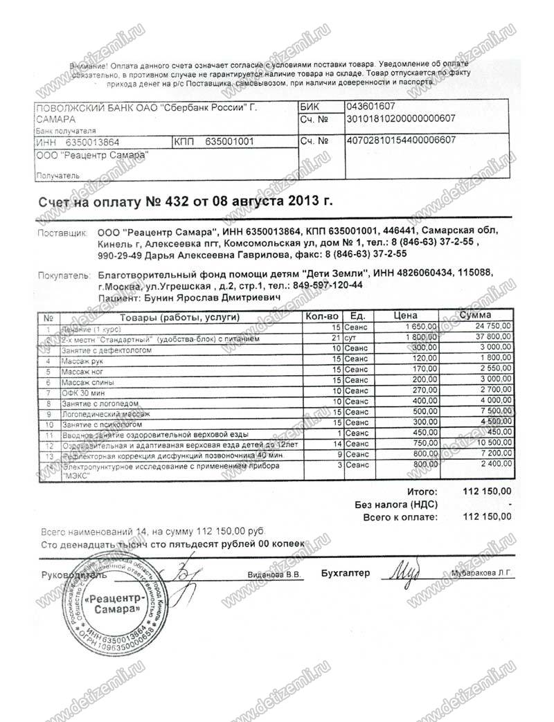 Оплачено лечение Ярослава стоимостью 112150 рублей.