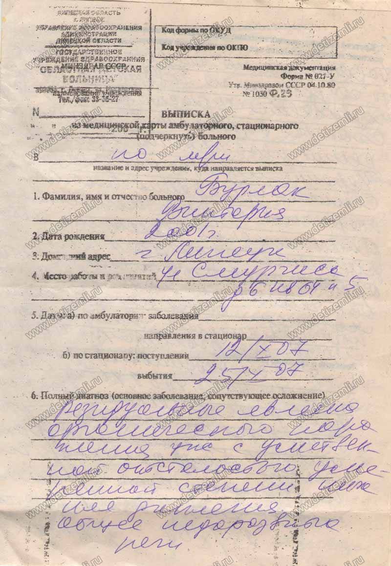 Здравствуйте! Обращается к вам мама Бурлак Виктории, Бурлак Елена Евгеньевна за помощью, в связи с тяжелым заболеванием моей дочери. Из-за тяжелых родов Вика стала инвалидом детства, ей поставили диагноз «органическое поражение центральной нервной системы, задержка психо-речевого развития». С рождения лечимся в детской областной больнице, но желаемых результатов это лечение не приносило. В мае 2005 г. я начала возить Вику на лечение в г. Москву в «Институт медицинских технологий». Там Вику научили твердо сидеть, ходить с моей помощью за одну руку, переворачиваться с живота на спину, частично понимать обращенную речь. Конечно этого мало для ее возраста, ведь нам уже 6 лет, но мы и этому результату очень рады. Мне очень хочется, чтобы моя дочь была как все дети, могла играть с ними в песочнице, кататься на велосипеде, читать книжки, рисовать, разговаривать. Но она этого ничего не может и мне очень больно от того, что я не могу ей помочь, т.к. хочется. Лечение в «Институте медицинских технологий» платное, стоимость одного курса 40000 рублей, с периодичностью 3 месяца, а для меня это очень большая сумма, которую я в одиночку не смогу собрать. Я воспитываю Вику одна, папа ее бросил сразу, т.к больные дети ему не нужны. А я очень люблю свою дочку, и не брошу в такой ситуации на произвол судьбы. Я очень вас прошу помочь нам в сборе средств для лечения Вики. Я верю в то, что есть еще добрые люди, которые способны понять и помочь чужому горю. От вашего милосердия зависит судьба не только моей Вики, но и других больных деток. Ведь дети – это наше будущее.