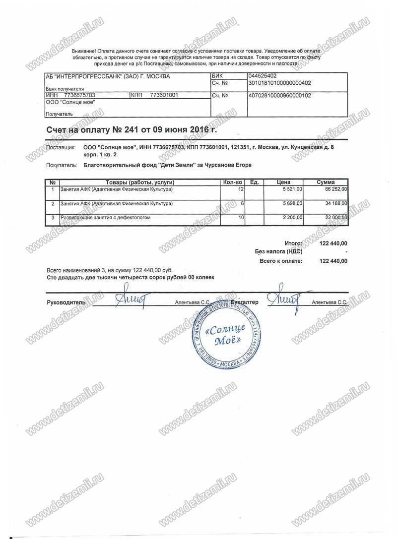 Егору оплачено лечение стоимостью 122 440 рублей.