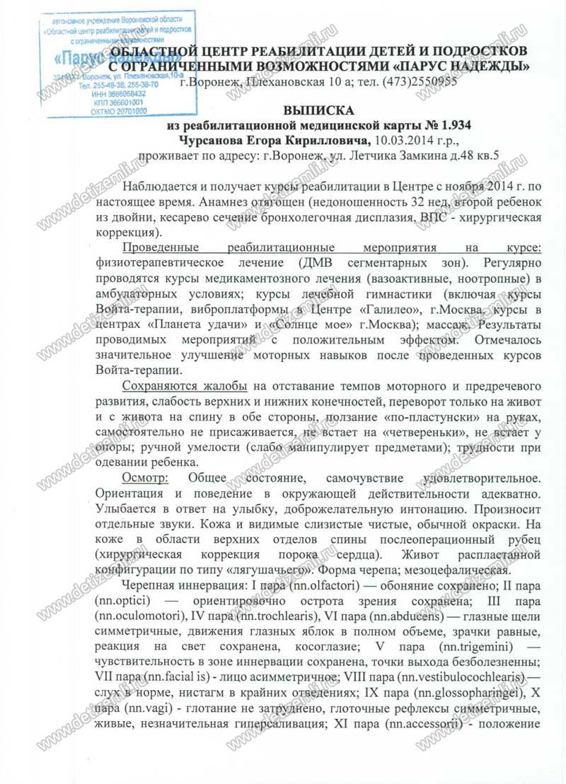Оплачено лечение Чурсанова Егора