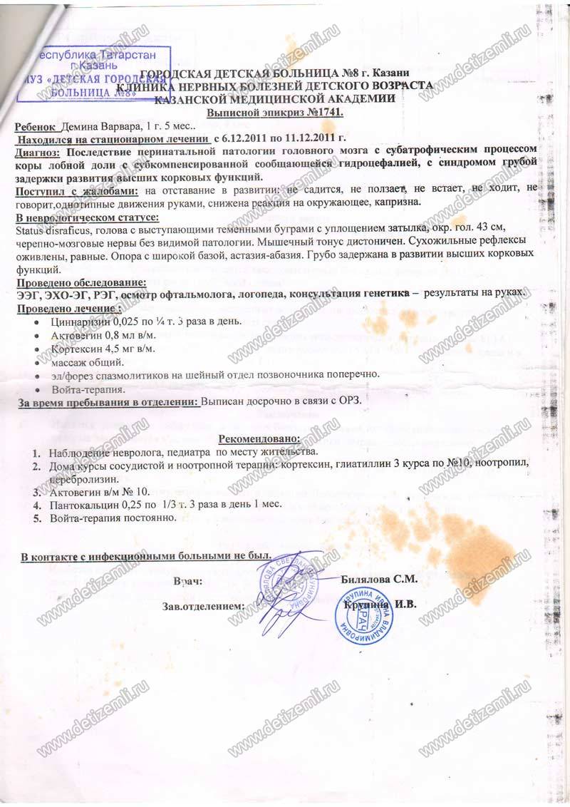 В первый год жизни Вари ее родители даже не догадывались с какими проблемами им придется столкнуться. После томографии головного мозга у девочки обнаружили частичную атрофию коры головного мозга. Когда родители услышали диагноз у них просто опустились руки, но они решили бороться за жизнь своего ребенка. Сейчас Варя проходит необходимое комплексное лечение. По совету врачей было решено провести лечение стволовыми клетками, которое стоит 125000 рублей. Лечение стволовыми клетками планируется в Москве в