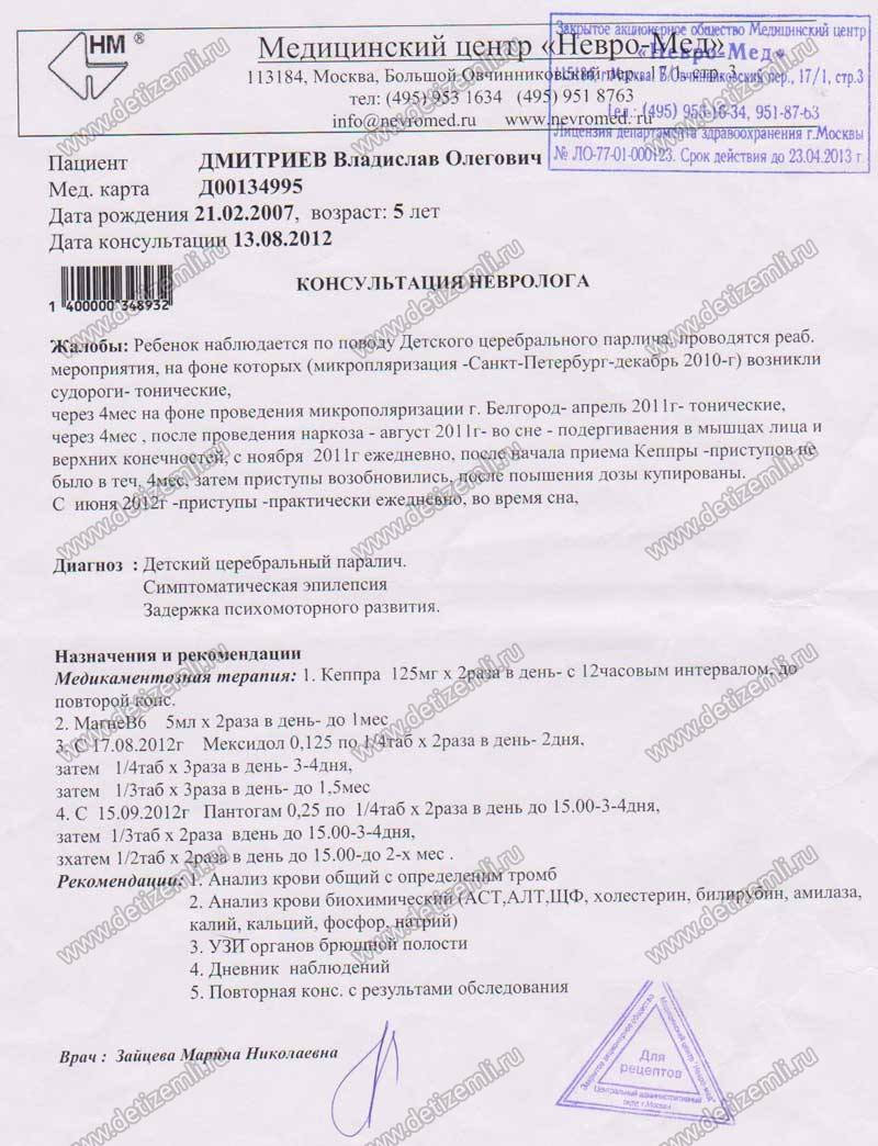 Оплачено лечение Дмитриева Владислава
