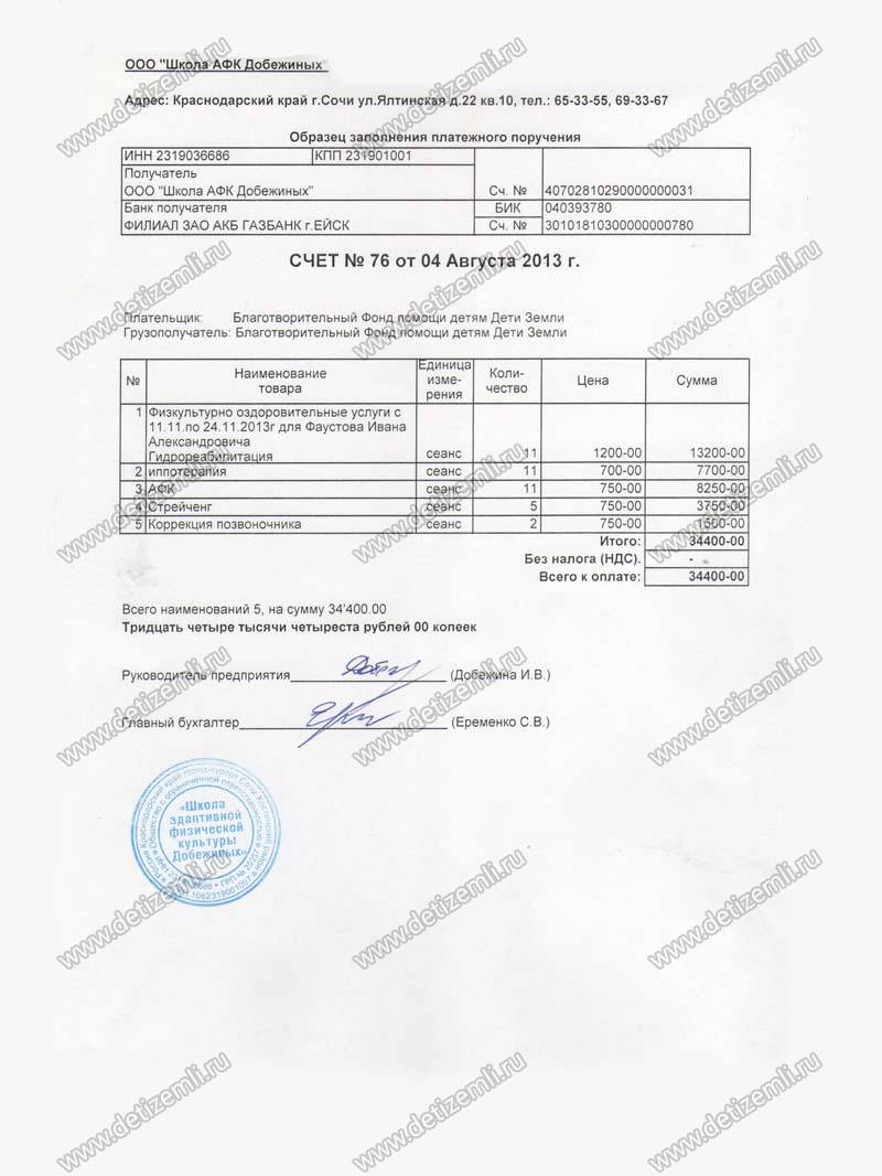 Оплачено лечение Вани стоимостью 34 400 рублей.