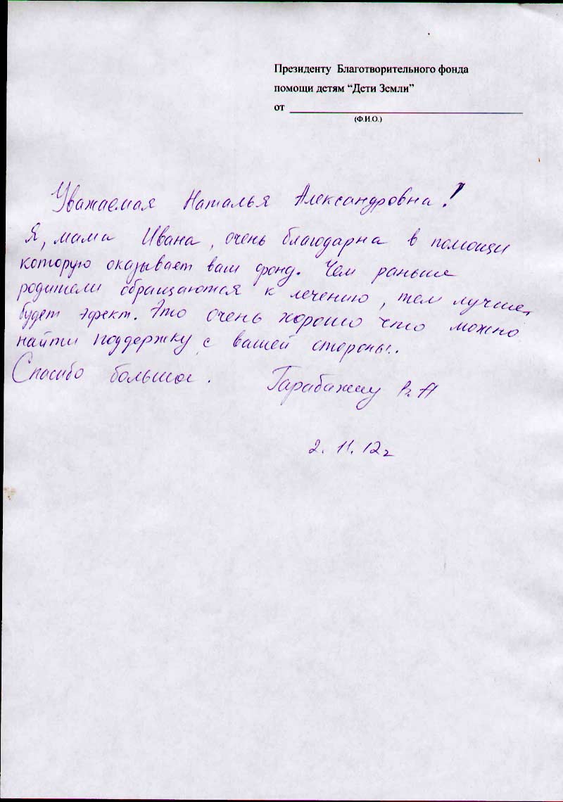 Благотворительный фонд помощи детям «Дети Земли» завершает сбор благотворительных пожертвований на оплату лечения Вани. После майских праздников будет оплачено его лечение. Мы от всего сердца желаем Ивану успехов в борьбе с болезнью и скорейшего выздоровления.