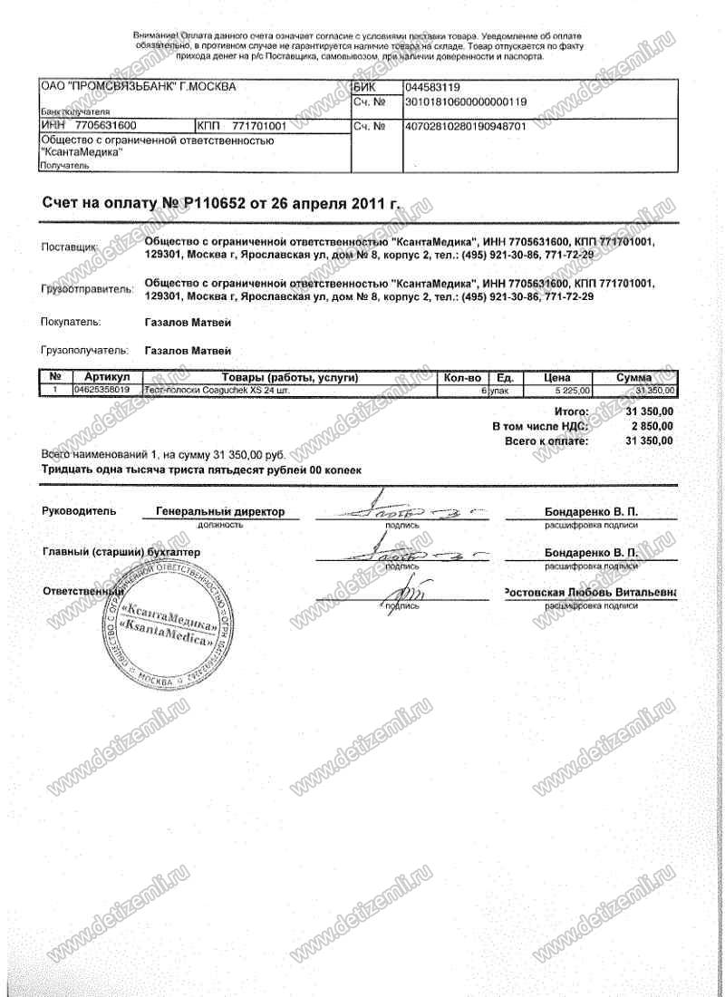 Полностью оплачены тест-полоски стоимостью 31 350 рублей