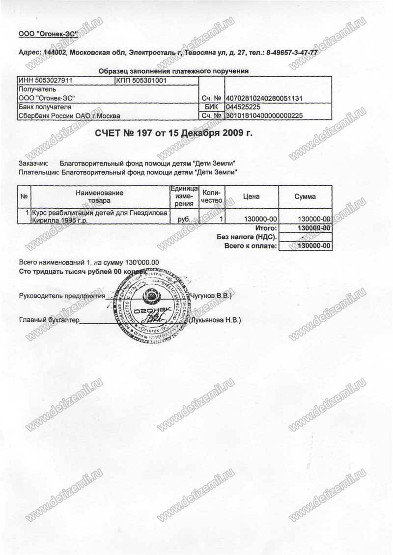 Полностью оплачено лечение Кирилла в г. Москва стоимостью 132940 рублей.