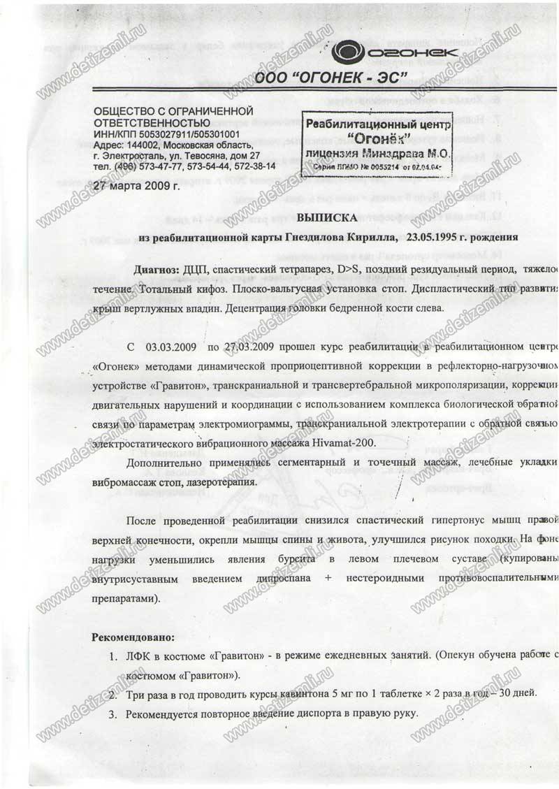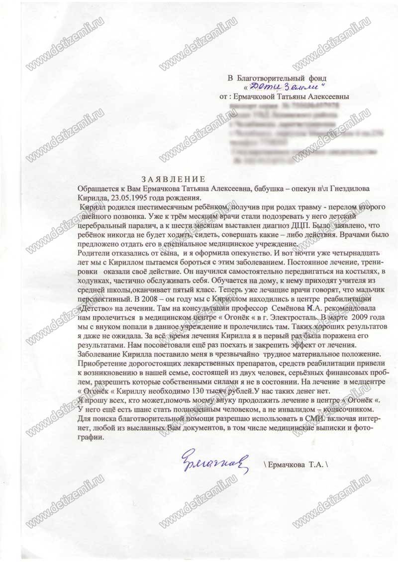 Полностью оплачено лечение Гнездилова Кирилла в г. Москва