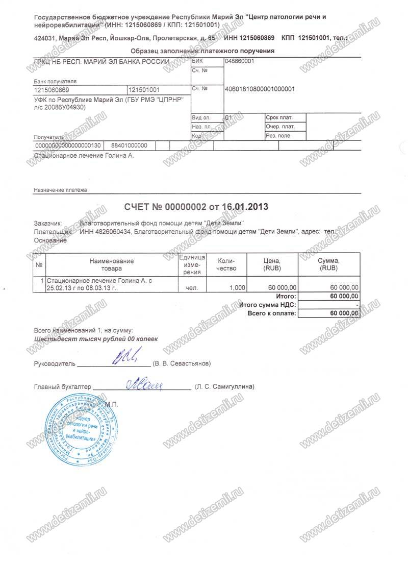 Оплачено лечение Саши стоимостью 60 000 рублей.