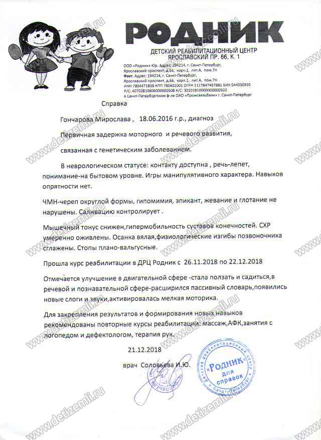Благотворительный фонд помощи детям «Дети Земли» оплатил лечение Мирославы стоимостью 124 400 рублей. Благодарим всех за помощь и поддержку!