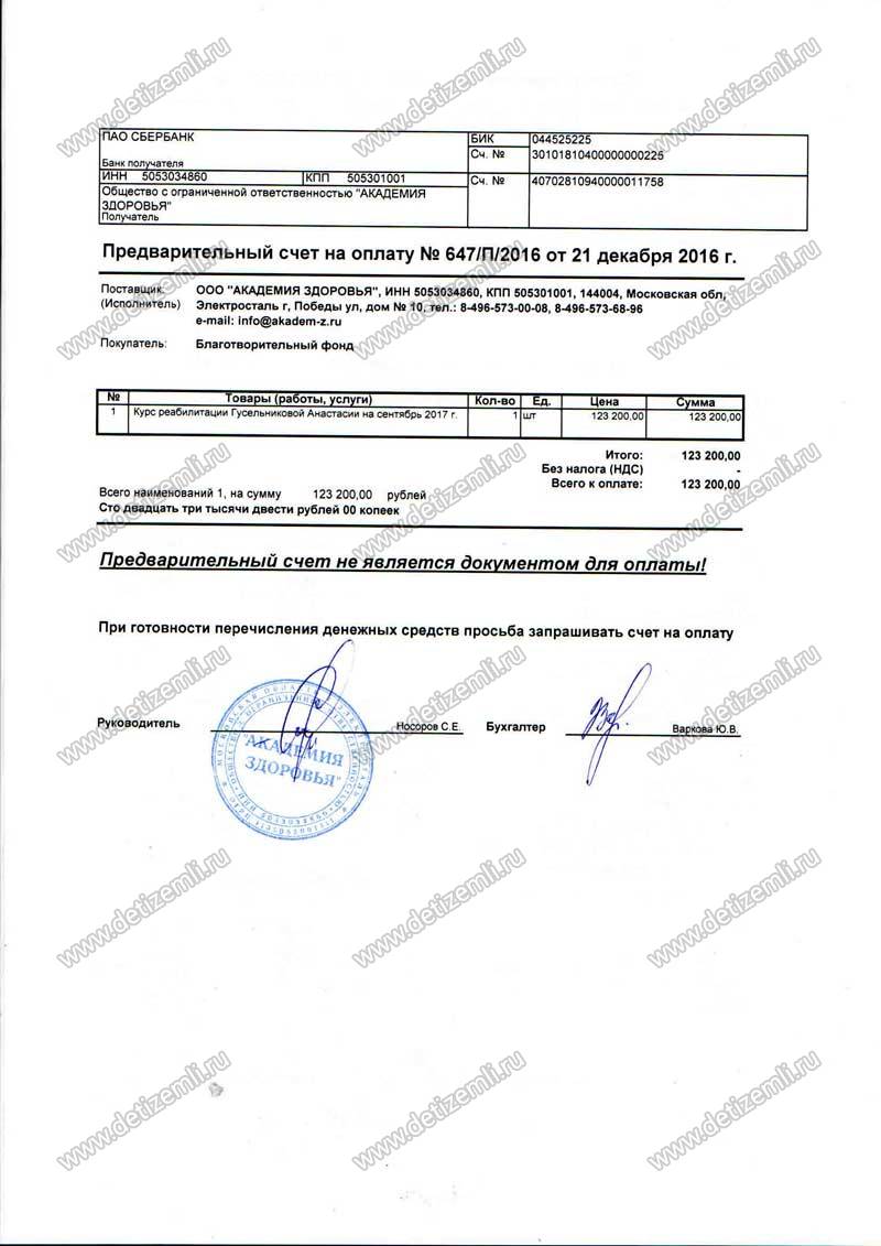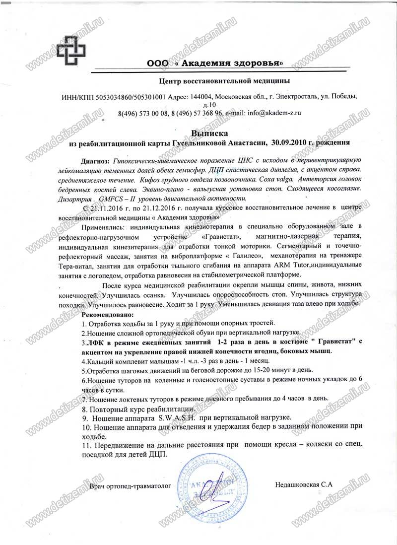 Оплачено лечение Насти Гусельниковой
