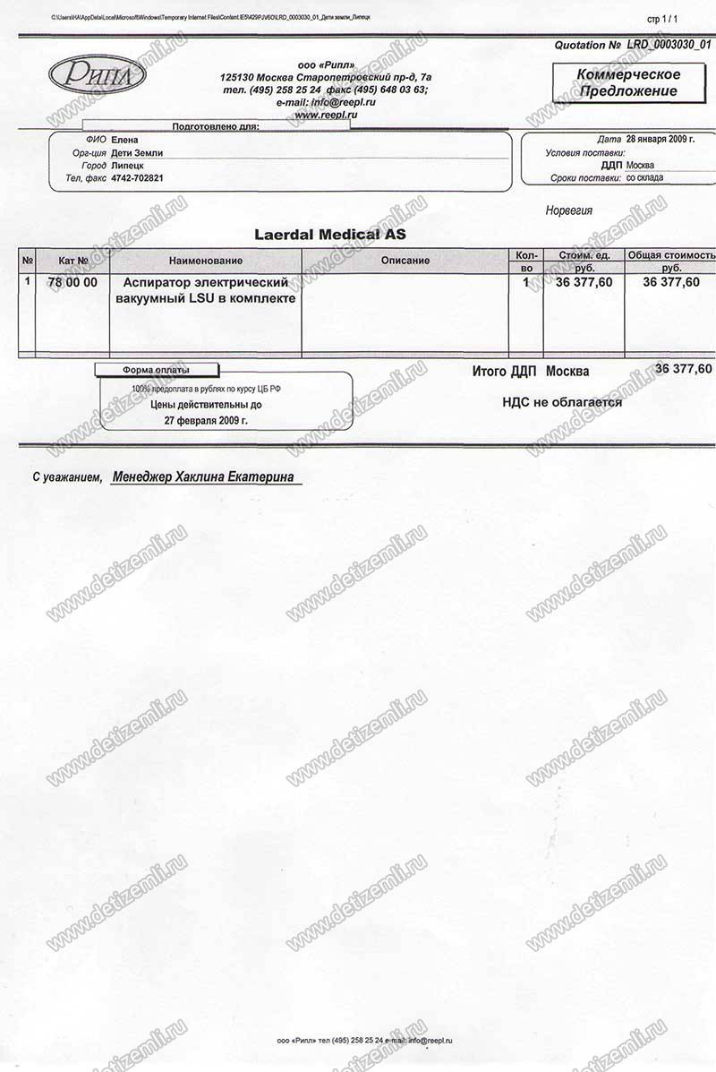 Оплачен аспиратор электрический вакуумный LSU стоимостью 36 377,6 рублей.