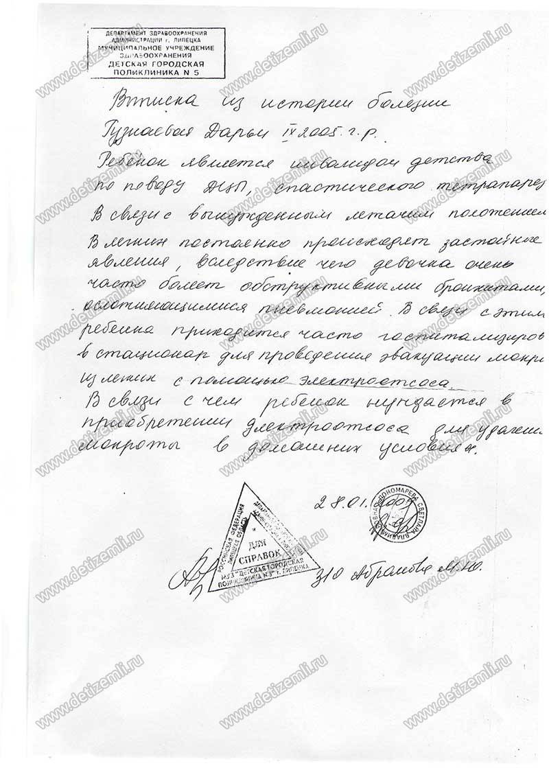 К нашему списку заболеваний добавился еще целый букет. Пошли бесконечные уколы, массажи, лекарства, капельницы. Все это время мы продолжаем борьбу со страшным недугом. В 2008 году сделали МРТ головного мозга. У Даши начал атрофироваться мозг и пропали все рефлексы. Уже практически год мы едим через зонд. Из-за лежачего образа жизни у Дашечки очень много скапливается мокроты. Для более редкого посещения больницы нам в домашних условиях необходим электроотсос для откачивания мокроты. Но у нас нет возможности приобрести его за свои деньги.