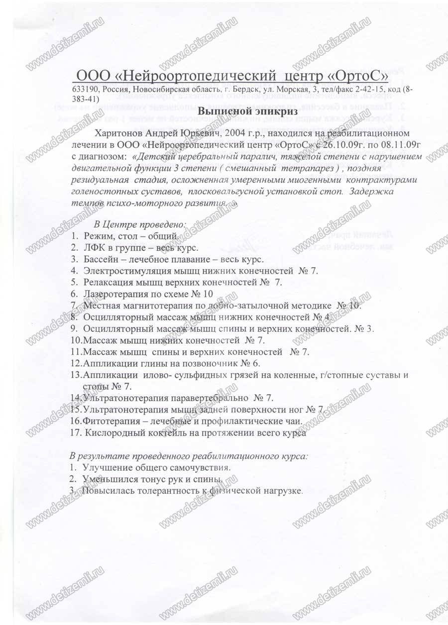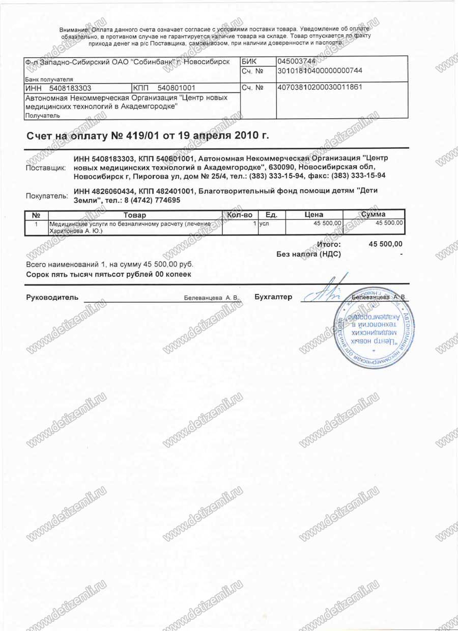 Оплачено лечение Андрея в г. Новосибирске стоимостью 45.500 рублей
