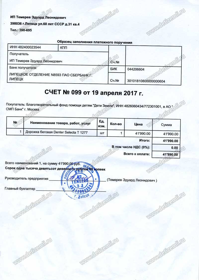 Оплачена беговая дорожка стоимостью 41990 рублей.
