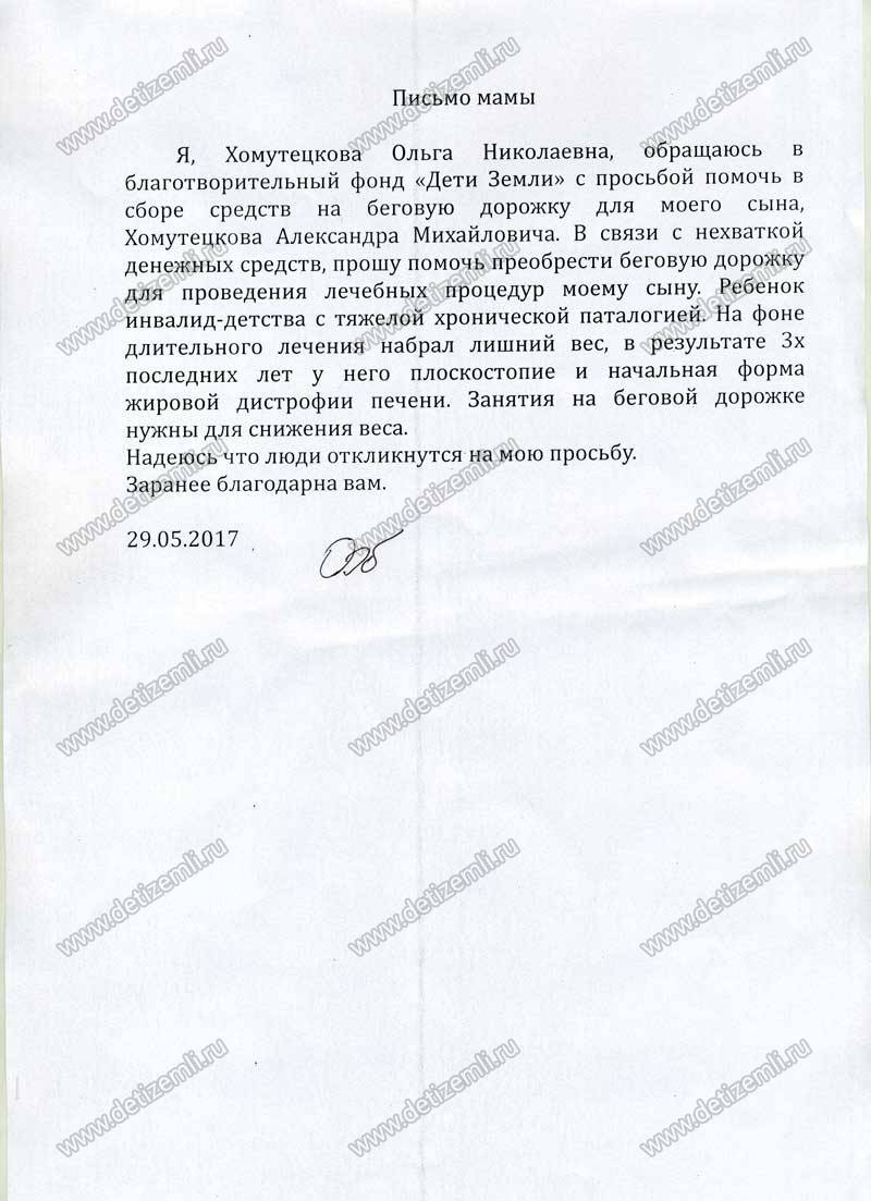 Благотворительный фонд помощи детям «Дети Земли» собрал средства на Хомутецкова Сашу. Благодарим всех за помощь!