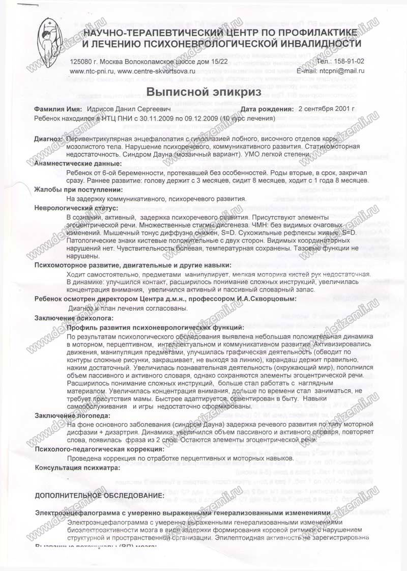 Данила родился с синдромом Дауна. С самого рождения он часто болел и медленно развивался. В четыре года мама отвезла Данила в Москву к профессору Скворцову. Лечение очень помогло и с той поры каждый год Данила наблюдается в московской клинике. Мальчик очень стремится к познанию всего нового и интересного. Лечение дает очень хорошие результаты. Сейчас ребенку требуется курс лечения в клинике Скворцова стоимостью 56000 рублей. Поможем ребенку всем миром!