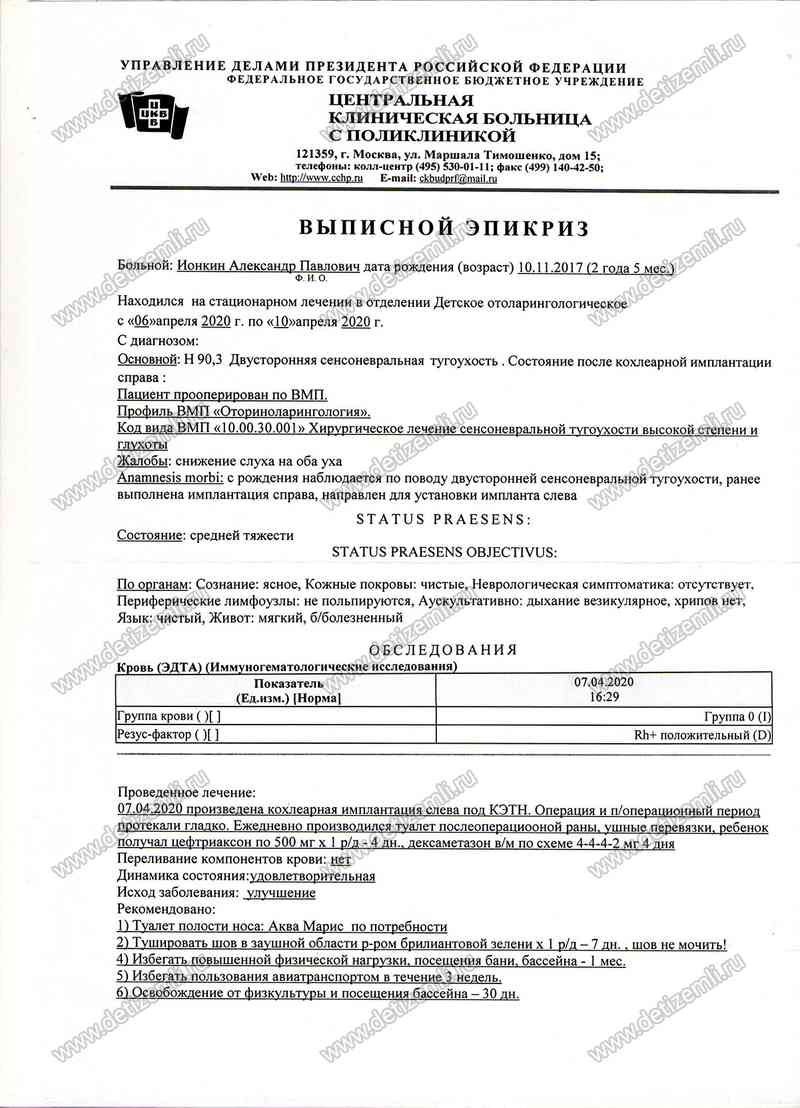 Благотворительный фонд помощи детям «Дети Земли» оплатил лечение Саши Ионкина. Желаем ему успехов в лечении!