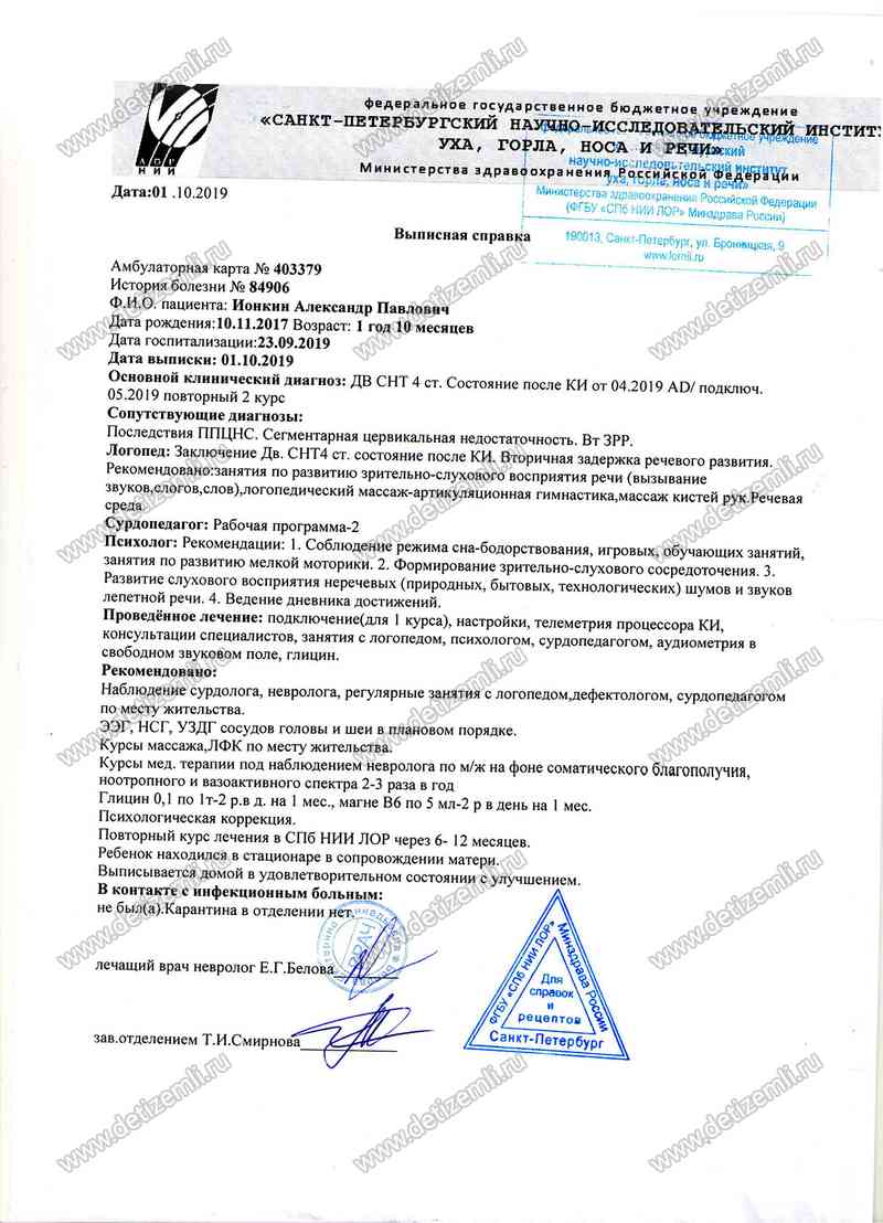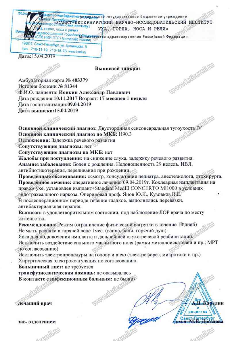 Добрый день! Пишет вам, Ионкина Екатерина – мама ребенка-инвалида после кохлеарной имплантации.
