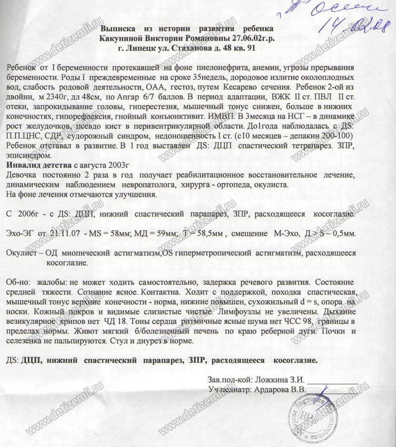 Наши две дочки-двойняшки Аня и Вика родились недоношенными, с ослабленным рефлексом, часто плакали, не ели, не спали. В 8 месяцев начались судороги. Нам назначили лечение депакином, противосудорожным препаратом, до 3-х лет. Судороги прекратились, но депакин затормозил развитие девочек. Мы с мужем понимаем, что диагноз ДЦП не приговор. Мы ни в коем случае не опускаем руки. Мы прикладываем все усилия для того, чтобы у наших детей было будущее, чтобы они научились ходить, ходить красиво. Проблема только в том, что не всегда хватает средств, чтобы реализовать нашу мечту.