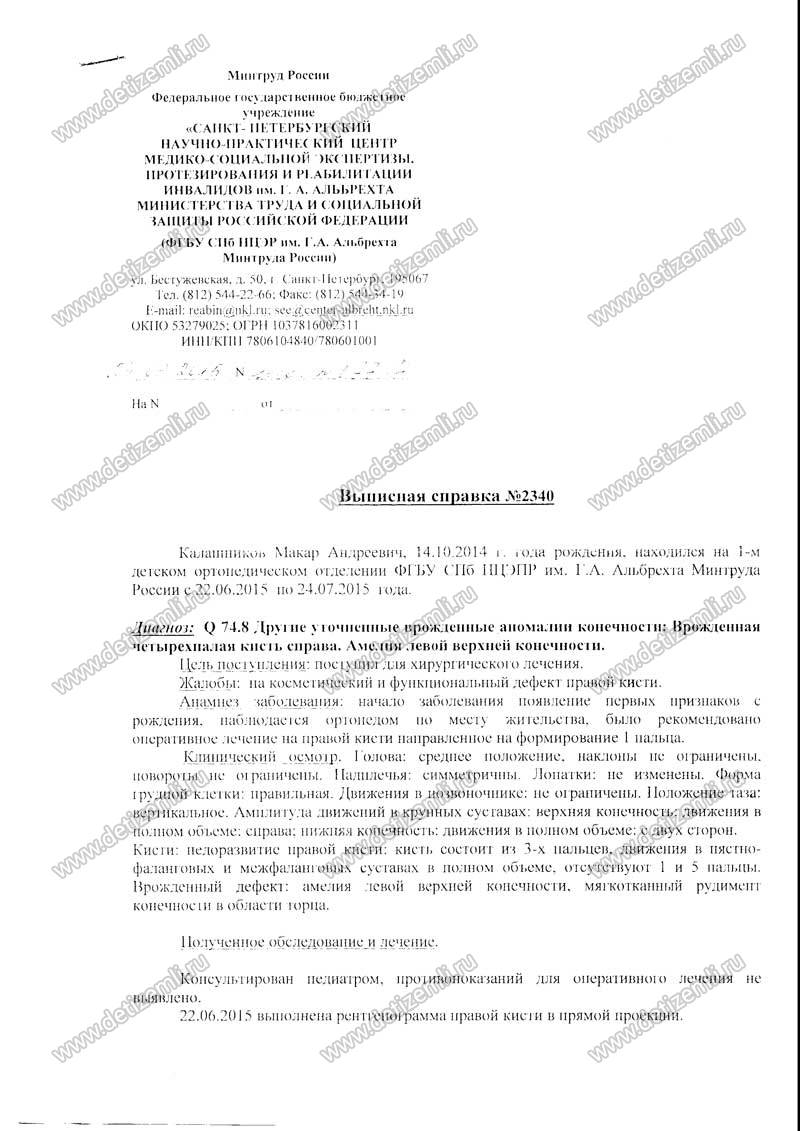 Из письма мамы Макара: Я обращаюсь к вам с просьбой о помощи. В октябре 2014 г. у нас родился сынок Калашников Макар Андреевич. Но когда я увидела, что у него отсутствует левая ручка, а на правой кисти нет двух пальцев, была в шоке, ведь мы ждали здорового и полноценного малыша. Порок был выявлен только после рождения. Наш диагноз — аплазия верхней левой конечности и