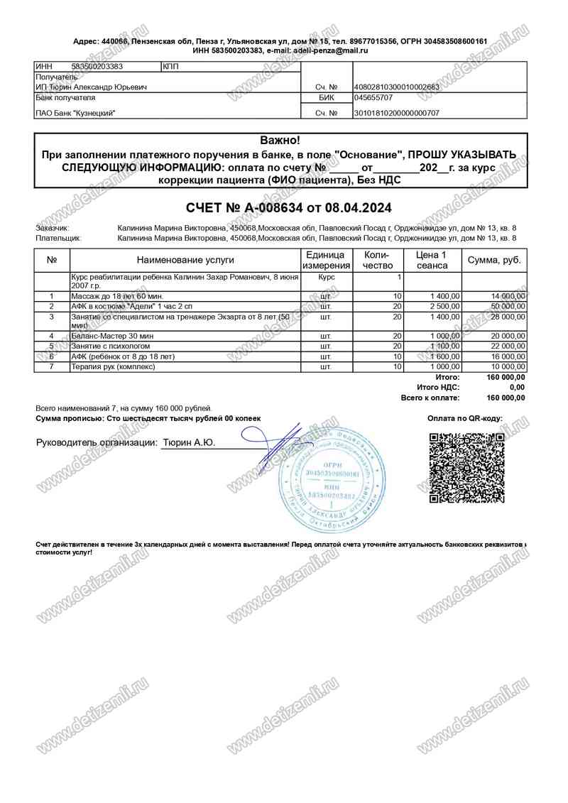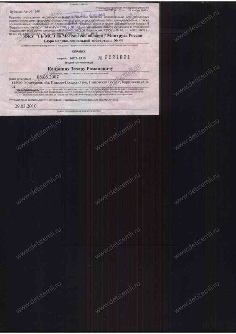 Благотворительный фонд помощи детям "Дети Земли" оплатил лечение Калинина Захара стоимостью 160 000 рублей. Желаем Захару успехов в лечении!