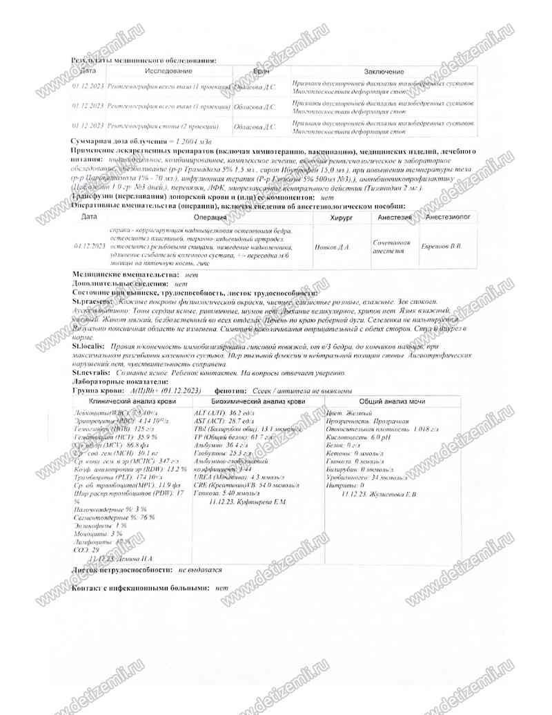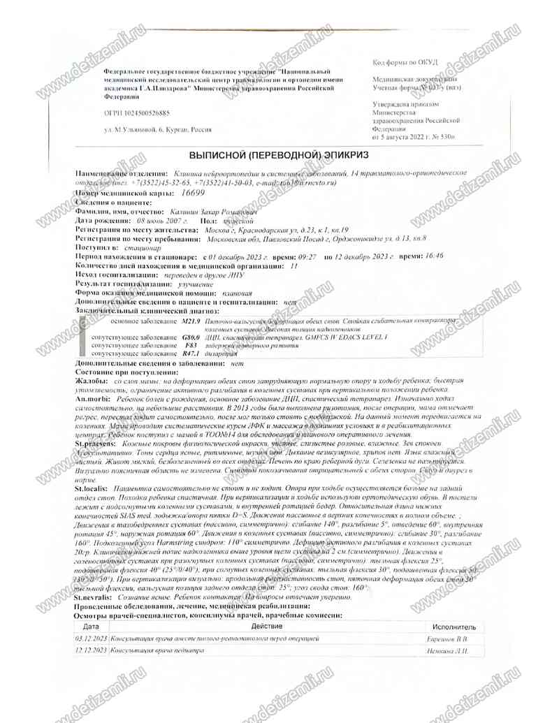 Оплачено лечение Калинина Захара