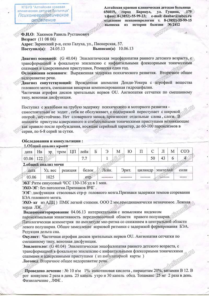 На данный момент диагноз у Равиля такой: Эпилептическая энцефалопатия, спастический тетрапарез, атрофия зрительных нервов, задержка психического и речевого развития, синдром