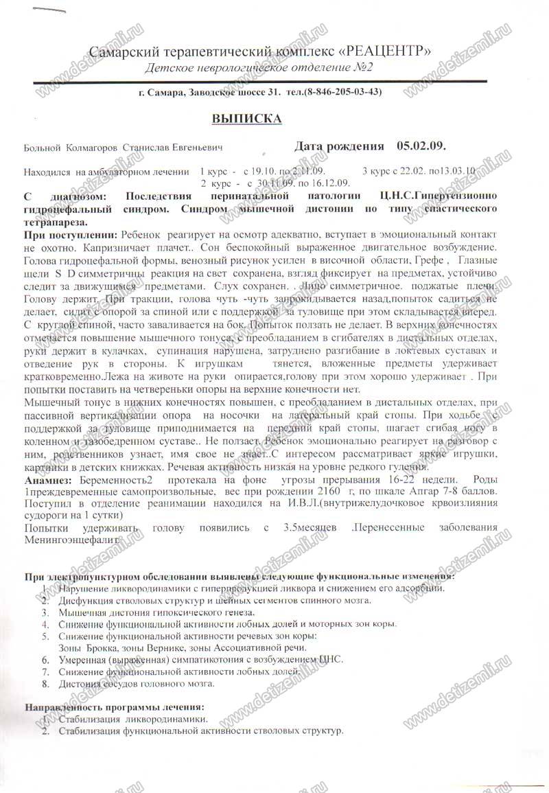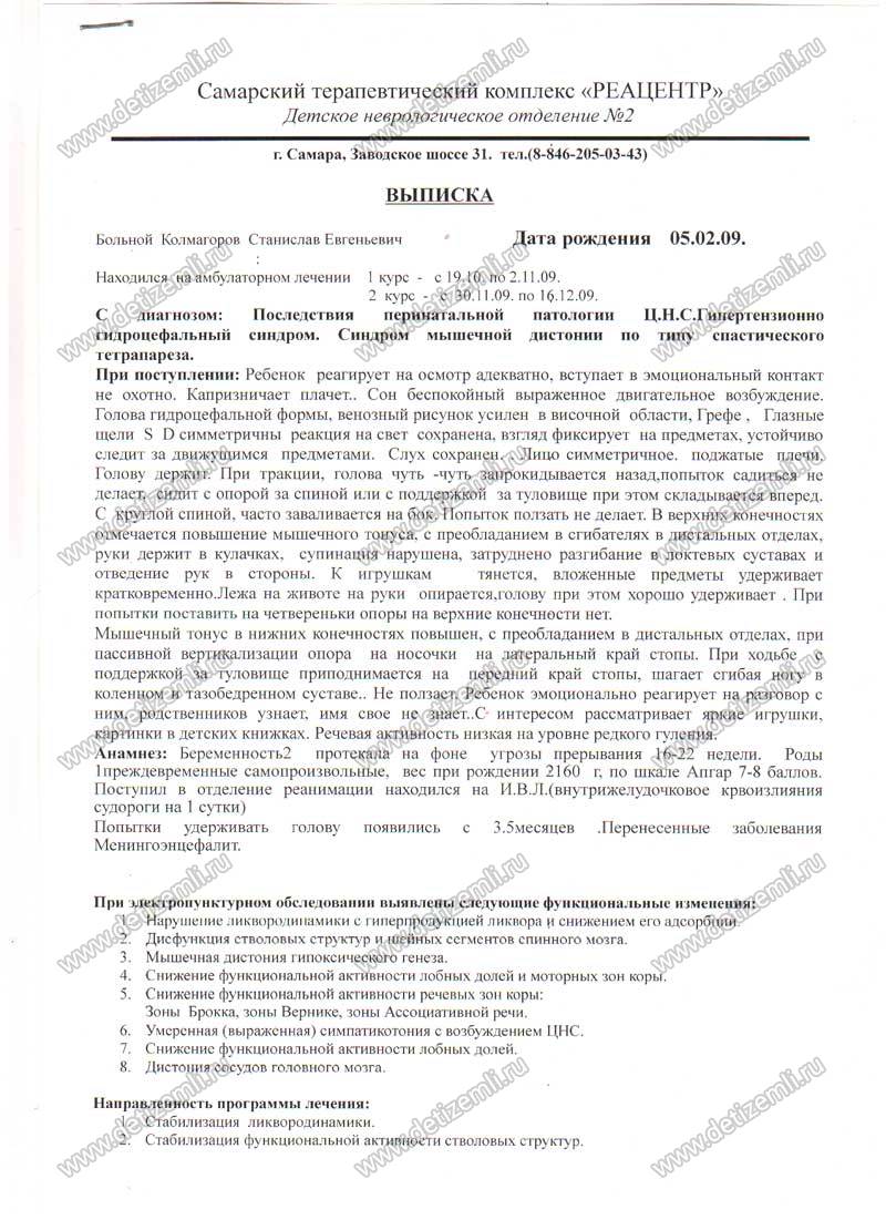 Наша история началась 5 февраля 2009 года с преждевременных родов. На 32 неделе беременности я родила своего долгожданного сыночка Стаса весом 2160 и ростом 44 см. Состояние ребенка с рождения тяжелое. Прогрессивное ухудшение за счет болевого синдрома, клонико-тонические судороги, апноэтические паузы. В возрасте 22 часов мой сын был переведен в реанимационное отделение детской городской больницы. Состояние в РАО так же тяжелое за счет неврологической симптоматики (менингоэнцефалит, кома, синдром угнетения).