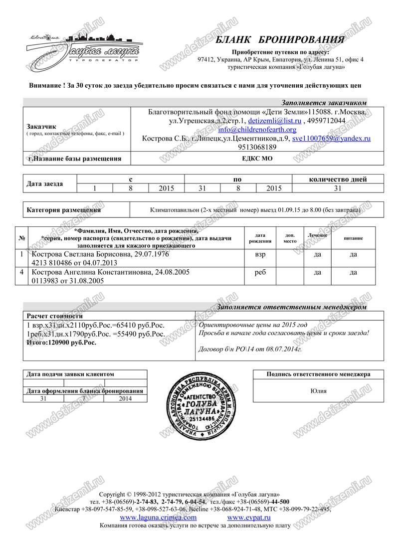 Оплачено лечение Ангелины стоимостью 120900 рублей.